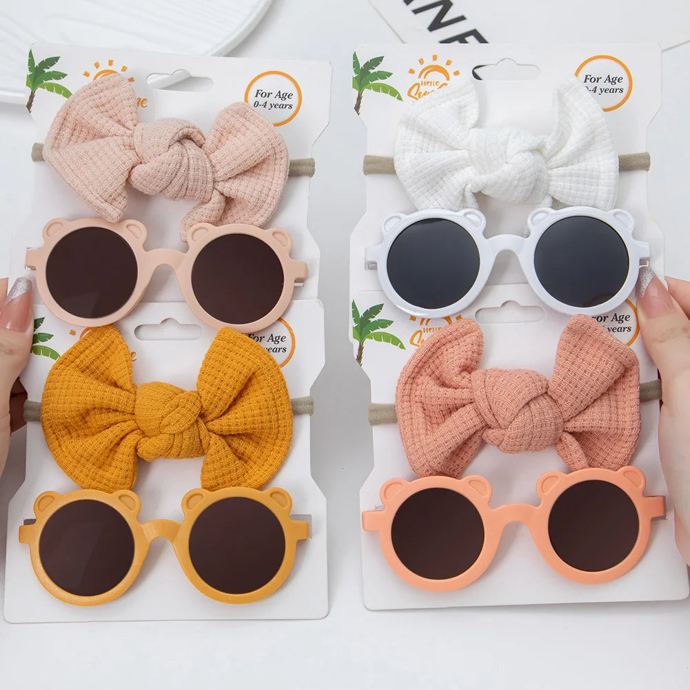 Bear Design Sunglasses + Knot Style Hair Bows 2pcs Set