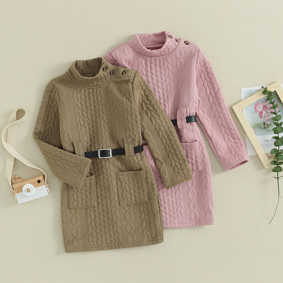 Rock the playground in this trendy Cable Knit Dress! With a high neck and belted...