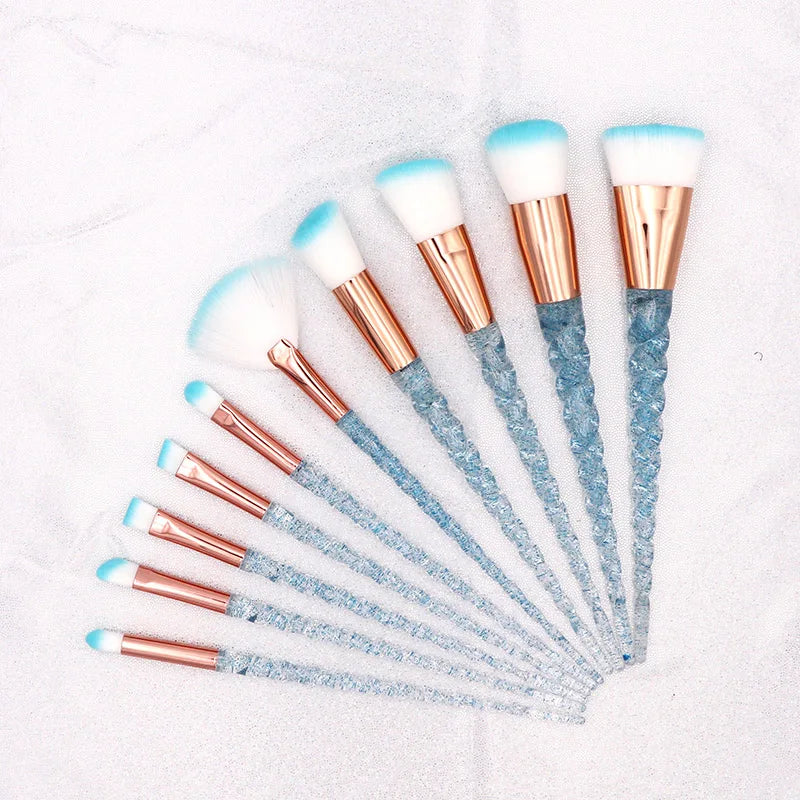 10Pcs/set Blue Unicorn Makeup Brushes Set