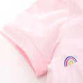 Feel cute and playful in our Rainbow Polo Dress with adorable ruffles. Perfect for your little ones in a beautiful baby pink color.