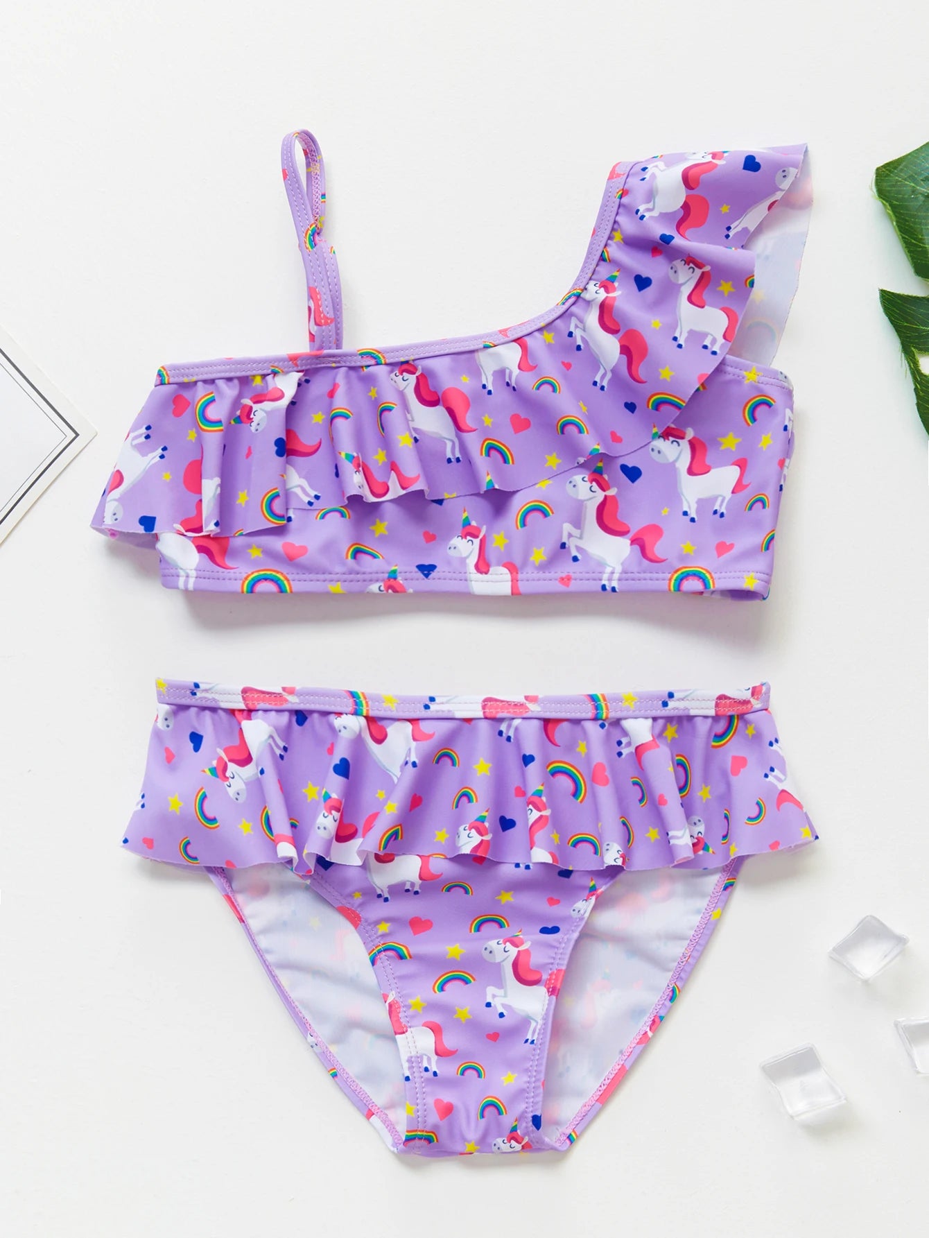 Girl's Bikini Swimsuit One-Shoulder Design