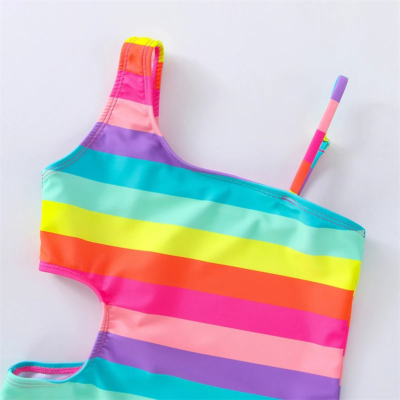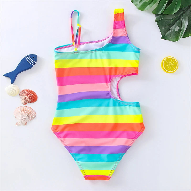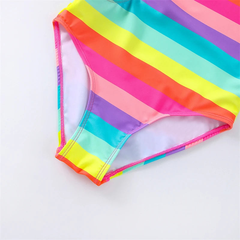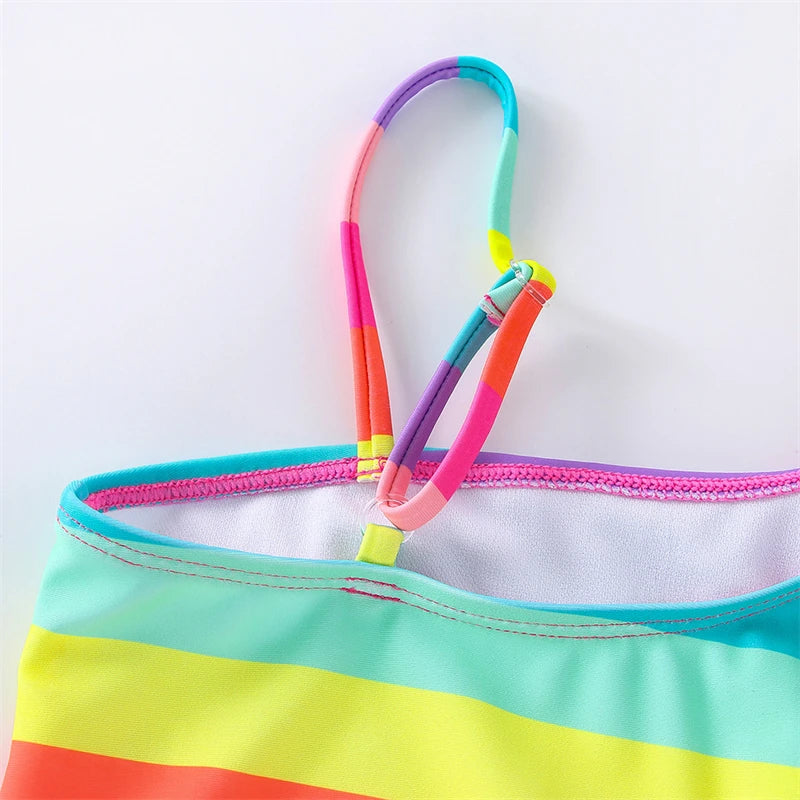 Make a splash in our Colorful Stripe Swim Suit! With a vibrant multicolored design, your kids will love showing off their style at the pool or beach. The perfect suit for both play and swimming lessons, our swimsuit is sure to be a hit with your little ones.