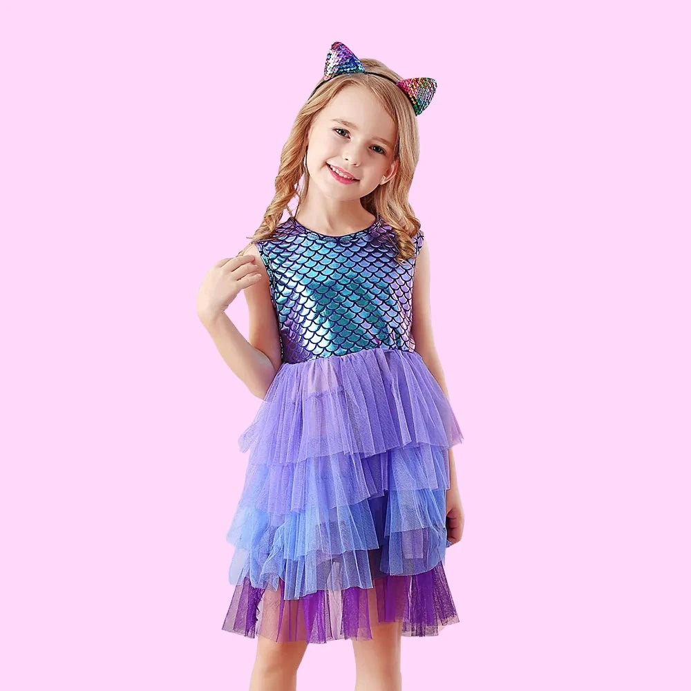 Be the star of the sea with our Mermaid Dress for children's princess parties! The tutu will impress all your guests, making your birthday celebration extra special. Let your daughter's inner mermaid shine with this unique, playful dress.