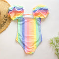 This kid-friendly swimsuit features a colourful gradient design that is sure to make a splash at the beach or pool.