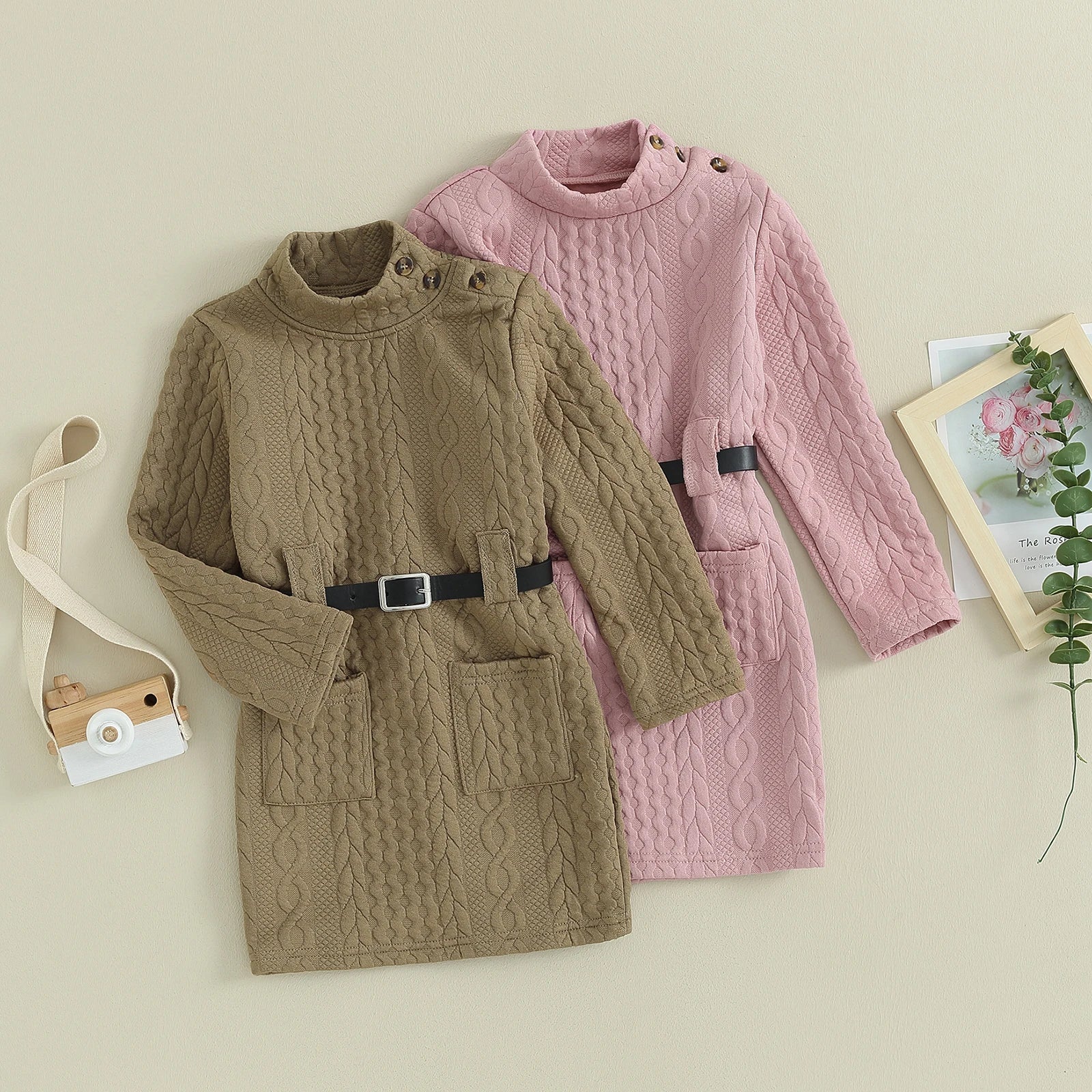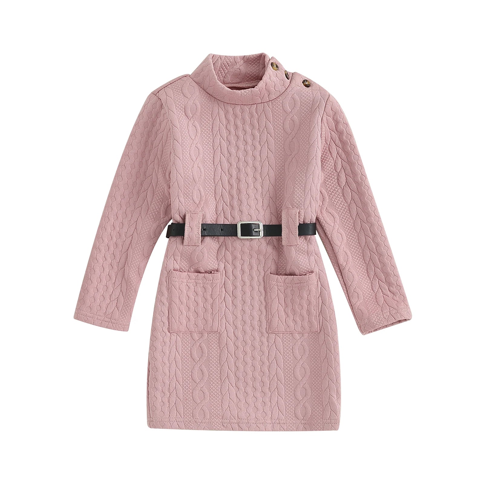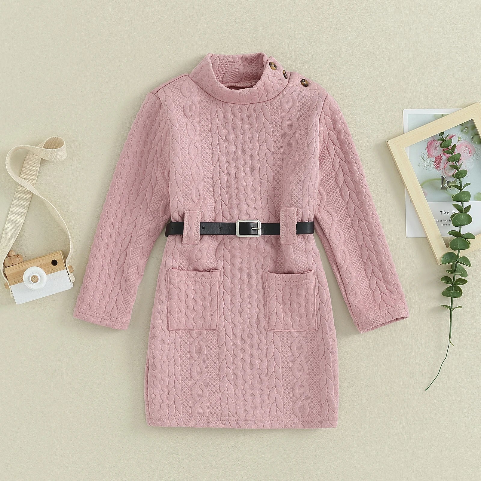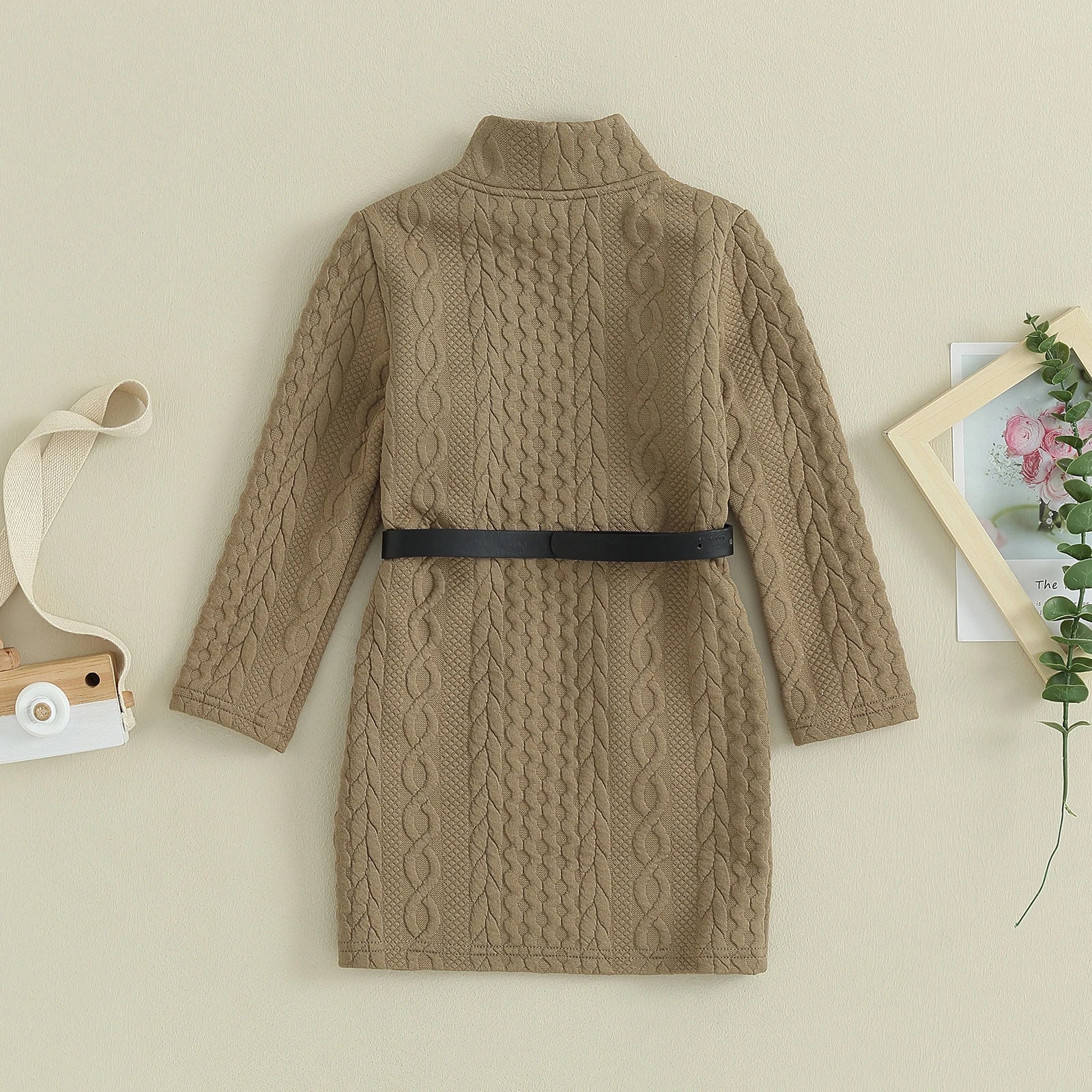 Rock the playground in this trendy Cable Knit Dress! With a high neck and belted waist, your little one will be the most stylish on the block. Perfect for children, this dress will keep them warm and fashionable all day long.