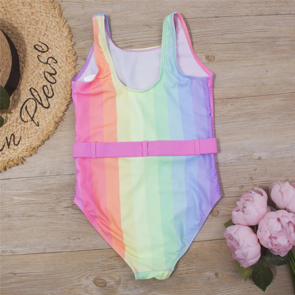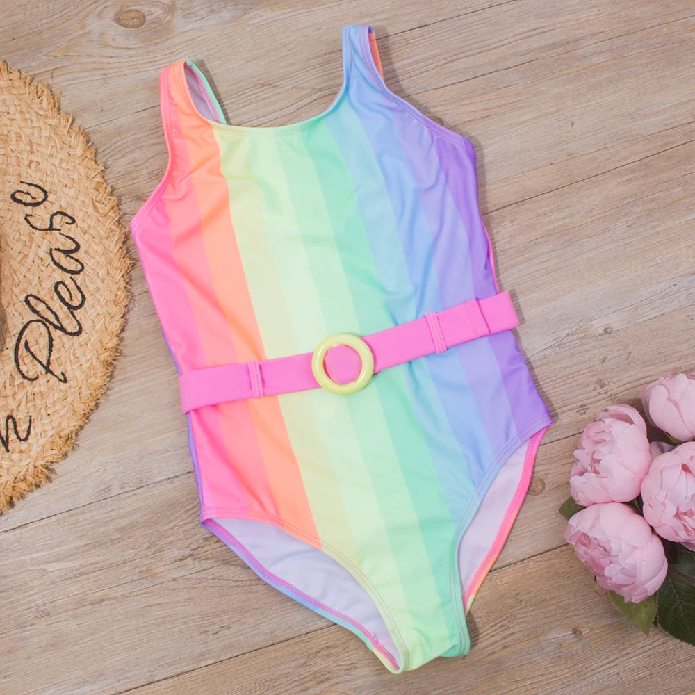 Treat your little one to the best with our Rainbow Print One-Piece Swimsuit!