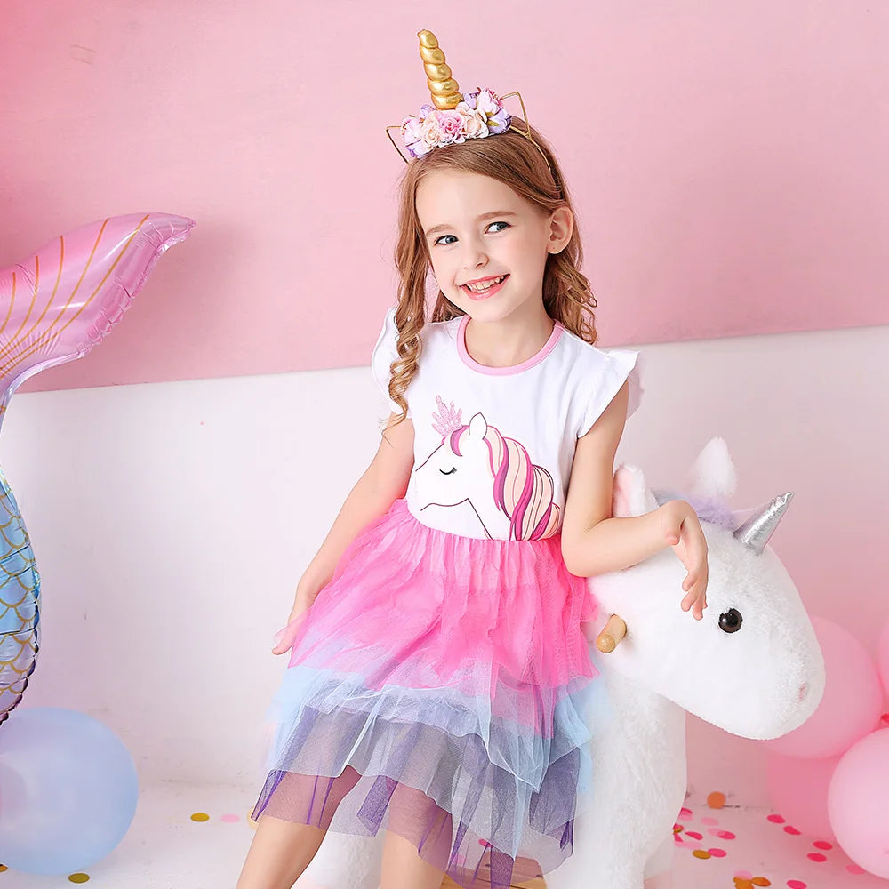 Unleash your little one's magical side with our Unicorn Tutu Dress. Made from colorful mesh, this playful party dress will make them feel like a real-life unicorn. Perfect for any occasion, it's sure to bring some whimsy and fun to their wardrobe.